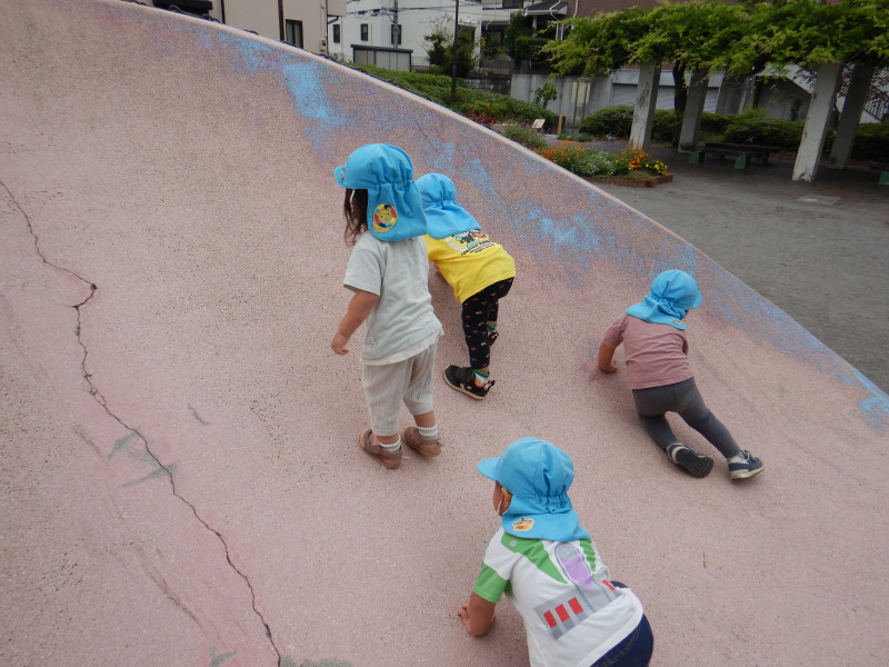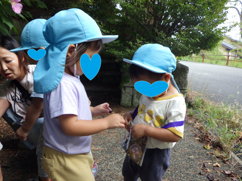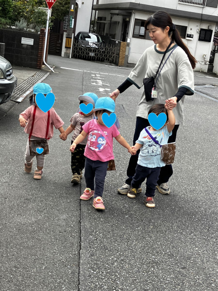 涼しくなって散歩に行く機会が増えてきました。夏前はバギーに乗っていましたが、今では友だちと手を繋いでお散歩♪