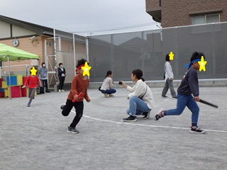 さくら組・ひまわり組が協力して行うグループ対抗リレー!