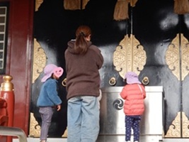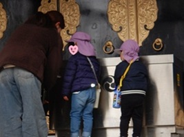 到着し「お願い事をしようか」と伝えると「サンタさんに?」という子どもらしい可愛い発言も…。実際にお金を入れて作法もしっかり行い、貴重な体験となりました。