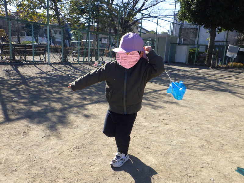 早速公園に持って行って凧あげに挑戦。