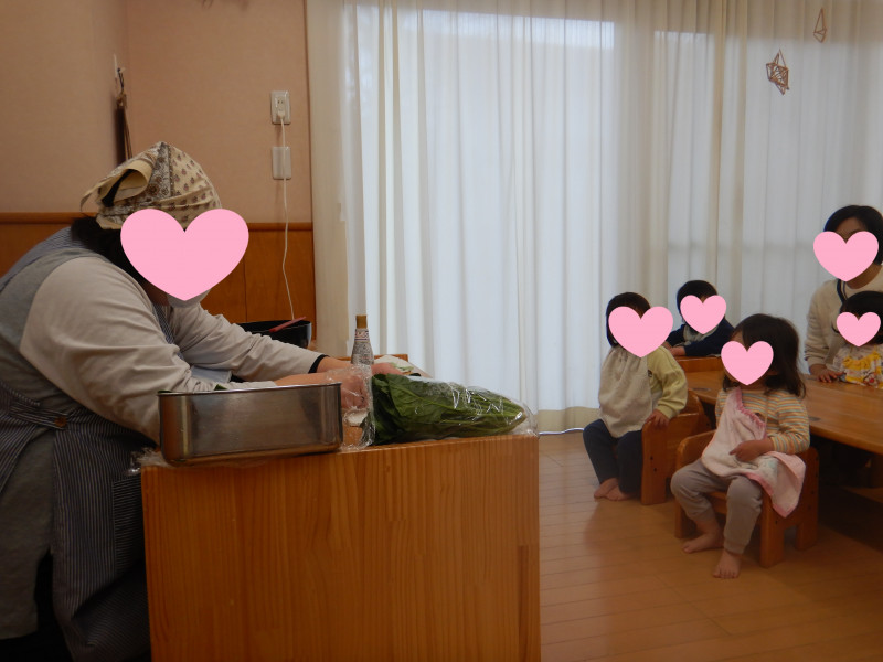 近くの畑に行き、「ください」、「どうぞ」とやり取りをしました。